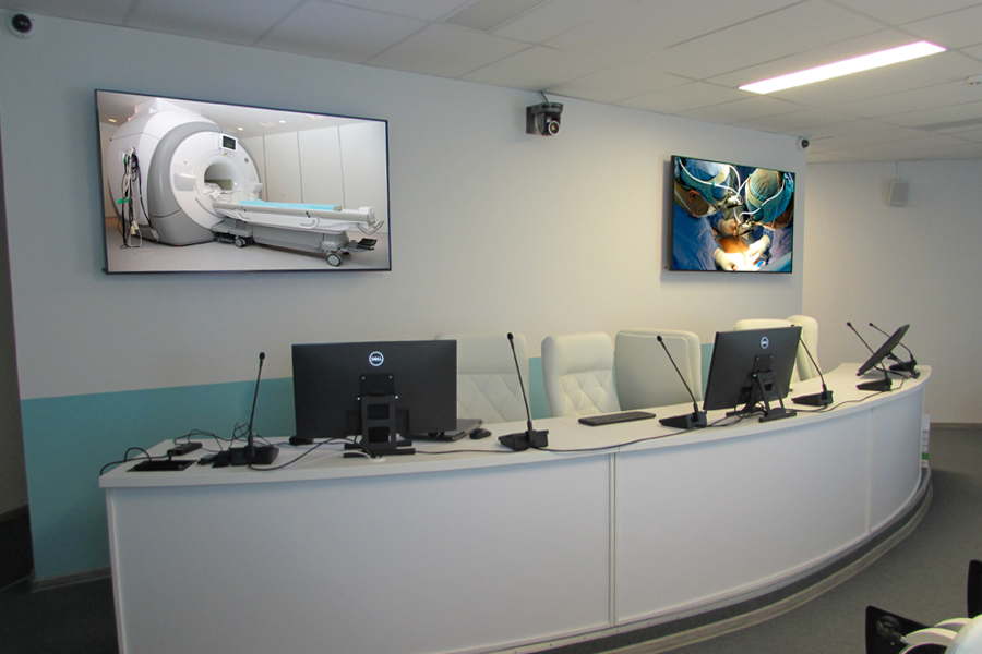 Особенность данного проекта в том, что мультимедийная система была успешно интегрирована с высокотехнологичным операционным и медицинским оборудованием, что позволяет удаленно наблюдать, анализировать и комментировать проводимые процедуры и манипуляции.