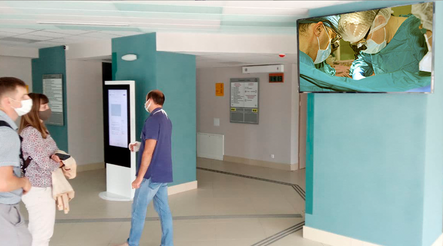 Многофункциональное аудиовизуальное оборудование ведущих вендоров используется для качественной передачи аудио и видеоконтента рекламного, образовательного и профессионального характера. Таким образом обеспечивается информирование в вестибюле, а также проведение консилиумов, видеоконференций, совещаний, презентаций, переговоров, докладов, учебных манипуляций и занятий перед сложнейшими и уникальными операциями в помещениях общего и специализированного назначения.